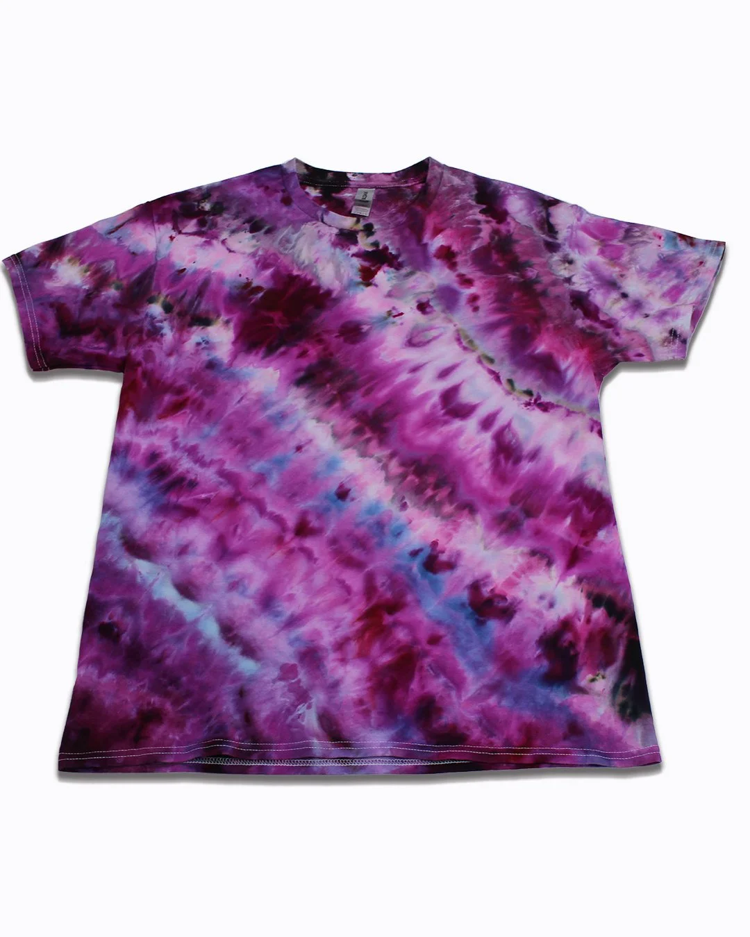 This is a one of a kind ice dyed tie dye shirt. It was handmade using a Gildan Ultra Cotton brand t-shirt.